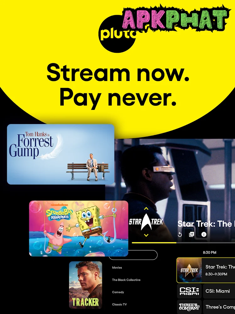 ¡Mira más de 250 canales en vivo y miles de películas gratis con Pluto TV APK 2025! No necesitas suscripción, solo transmite y disfruta. ¡Descárgalo ahora!
